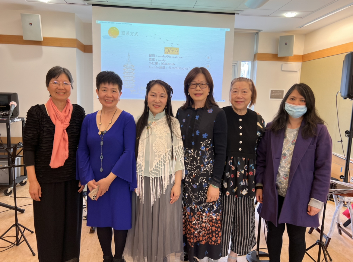 The San Francisco Guqin and Xiao Music Society was established in 2023, but as early as 2017, a music enthusiast organization led by Coral Liang had already organized several community music events.